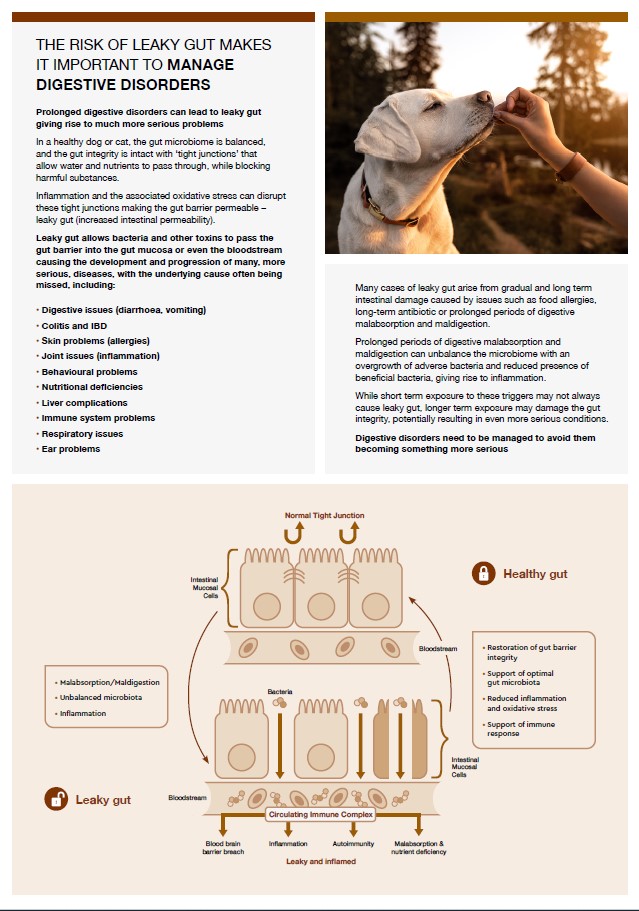 In a healthy dog or cat, the gut microbiome is balanced, and the gut integrity is intact with ‘tight junctions’ that allow water and nutrients to pass through, while blocking harmful substances.