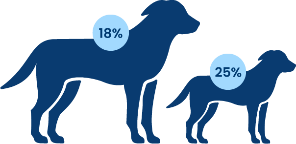 A healthy adult dog with moderate activity levels needs a minimum of 18% of protein on a dry matter basis and a growing puppy needs 25% but many of the high protein diets far exceed these levels
