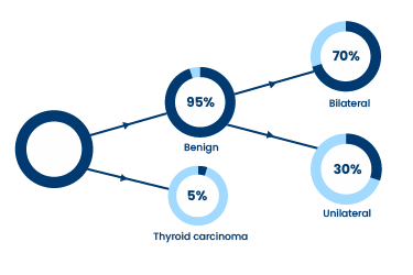 As the diagram shows, bilateral benign hyperplasia of the thyroid gland is the most common pathologic change.